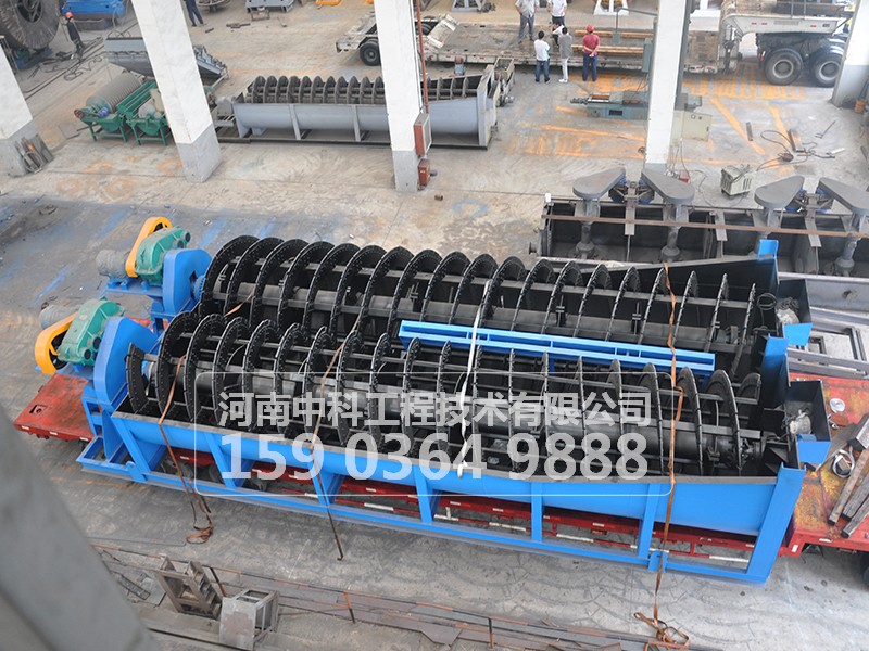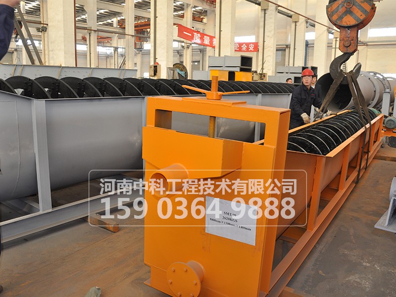 洗石機簡介本系列螺旋洗石機主要用于對破碎后物料的清洗。小顆粒懸浮于水中由溢流口流出,粗顆粒沉于槽底,由螺旋推向出料端。本洗石機也可用于礦物的脫泥、脫水、洗礦用途。而且本機具有結構簡單、堅固、操作可靠、維護管理方便、能長期連續運轉、對物料適應性強和生產能力大等特點,所以能滿足現代化大規模工業生產的需要。洗石機工作原理該洗石機主要由槽體、減速機、電機、中心軸、螺旋葉片、支架組成。本機呈傾斜安裝,...